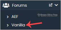 4. On the left side, locate the Forums category. Click on it and then on the Vanilla link that appears.