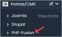 4. On the left side, locate the Portal/CMS category. Click on it and then on the PHP-Fusion link that appears.