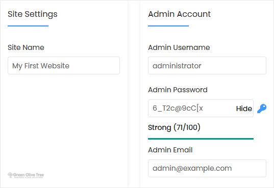 • Admin Username: Your new Plikli CMS username (for security reasons, do not use the administrator or the admin username).