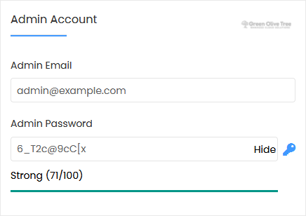 • Admin Username: Your new Fork username (for security reasons, do not use the administrator or the admin username).
