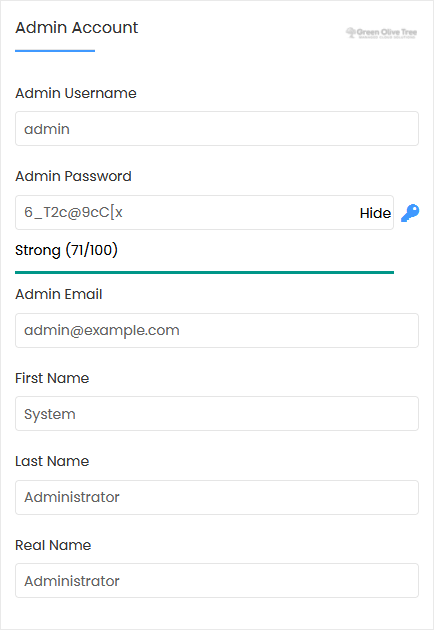 • Admin Username: Your new GRAV username (for security reasons, do not use the administrator or the admin username).