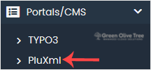 4. On the left side, locate the Portal/CMS category. Click on it and then on the PluXml link that appears.